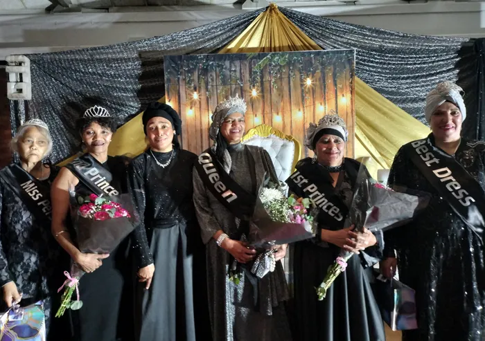 Lobelia Seniors’ beauty pageant 2023 winners, pictured, from left, Miss Personality Rachel Louw, 75, Second Princess Gladys Arries, 65, Lobelia Seniors’ club chairwoman Youmna Mohammed, 48, Queen Farieda Abrahams, 61, First Princess Farieda Martin, 61, and Ms Best Dress Gadija Abrahams, 61, all from Lentegeur. The annual pageant was judged by ward councillors Avron Plaatjies, Washiela Harris and Joan Woodman on Sunday May 7.