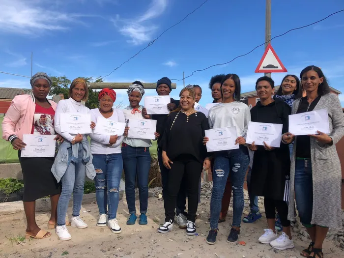 Maria Brander, middle, the founder and director of Sewing Academy, a non-profit company in Oval East Beacon Valley, is seen here with women who completed a free basic introductory sewing course. They will be selling their garments at 7 Oval East, in Beacon Valley, on Saturday June 1. Funds raised will be used to buy industrial sewing machines.