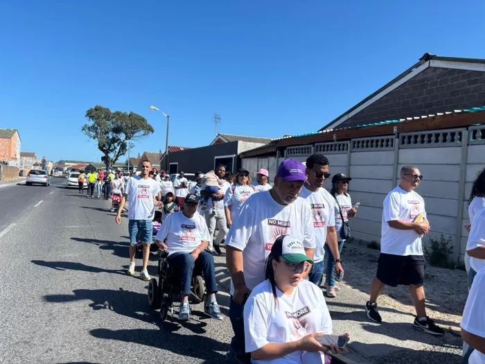 Participants wore white T-shirts bearing the slogan “No More Violence – Mitchell’s Plain.” Along the route, the group paused at locations where violent incidents had occurred, offering prayers for healing, protection, and restoration.