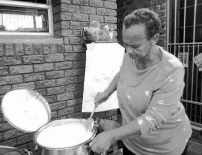 Aunty Maria preparing a pot of food to feed the community in Tafelsig.
