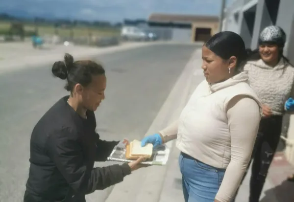 Fifteen-year-old Jaymee Morgan, has turned her awareness of hunger in her community into a mission of hope for others. Jaymee giving her neighbour a sandwich.