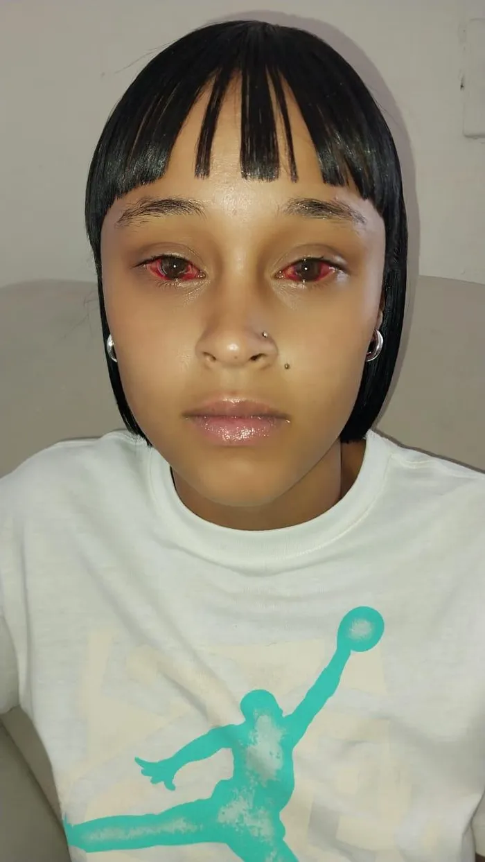She said her eyes remain bloodshot after the incident, and she avoids going outside because of her appearance.