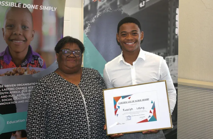 Rosaline Lekay with her son, Rudolph, as they celebrate his fully funded bursary and internship from the Alfeco Foundation on Thursday January 22.