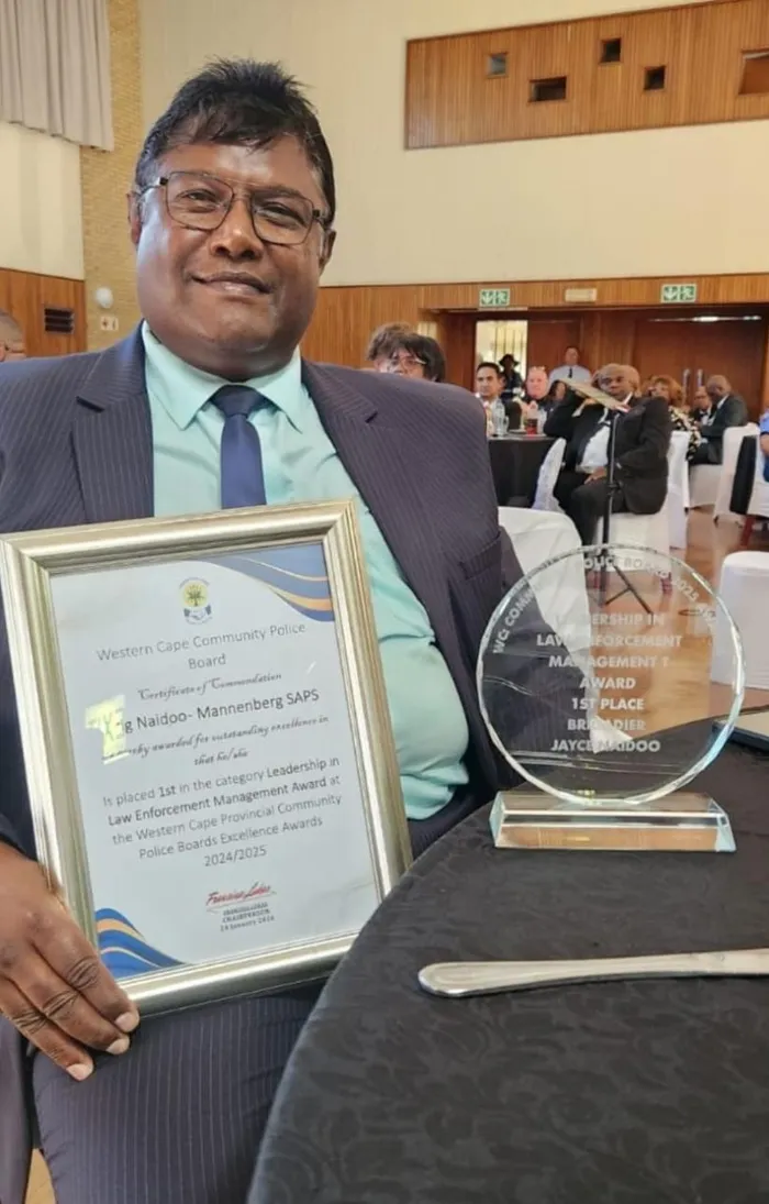 Manenberg SAPS station commander Brigadier Jayce Naidoo has placed first in the Law Enforcement Management leadership category at the Western Cape Community Police Awards.