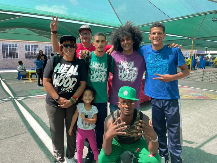 The crew from the Heal the Hood Project and Black Noise Next Generation from left back is Shaquile Southgate, in the middle left are Nativ, Stefan Benting, Emile YX?, Charly X2C and in front are Cypher Eftha and David Kabeyah.