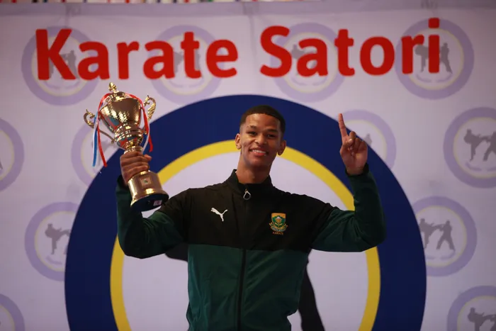 Karati Satori’s Aiden Jackson, 22, from Westgate, the current Karate South Africa (KSA) sportsman-of-the year, produced an impressive third-place finish, at the Union des Fédération Africanes de Karaté (UFAK) or African Karate Federation championships, at the Olive Convention Centre, in Durban, at the weekend. The who’s who of karate on the continent took part in the championships with Egypt topping the table with 32 medals, including 19 gold, followed by Morocco on 22 and Algeria in third place with 21 medals. South Africa finished sixth overall with three silver and 19 bronze medals.