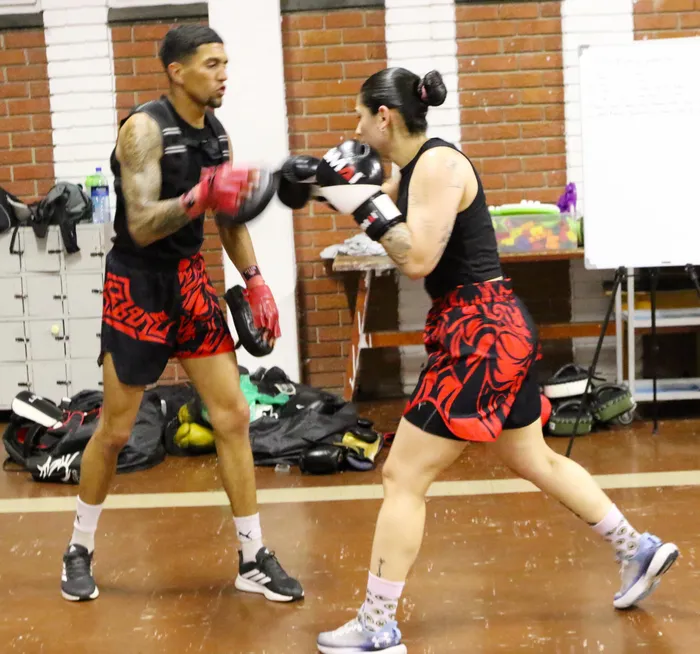 Sara Ajam working pads with Tatum Monis after their succes at the nationals.